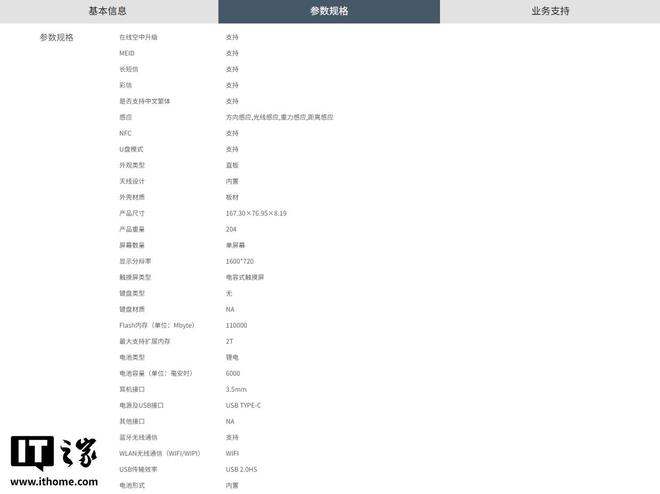 该机尺寸为 167.30×76.95×8.19mm、重约 204g,配备3.5mm 耳机接口 + USB Type-C 接口(USB 2.0HS 传输速率),其屏幕分辨率为 1600*720,内置 6000mAh 电池。