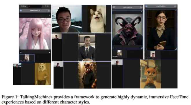 以 Character.AI 为例,不仅支持1对1聊天,还可以进行创作角色、发展剧情,甚至拉角色开“群聊派对”,其 7 月 5 日新发布的TalkingMachines(自回归扩散模型)可以实时进行 AI 角色视频互动——用户只需要输入一张图片和声音信号,该模型就能实现类似 FaceTime 的通话视觉互动。