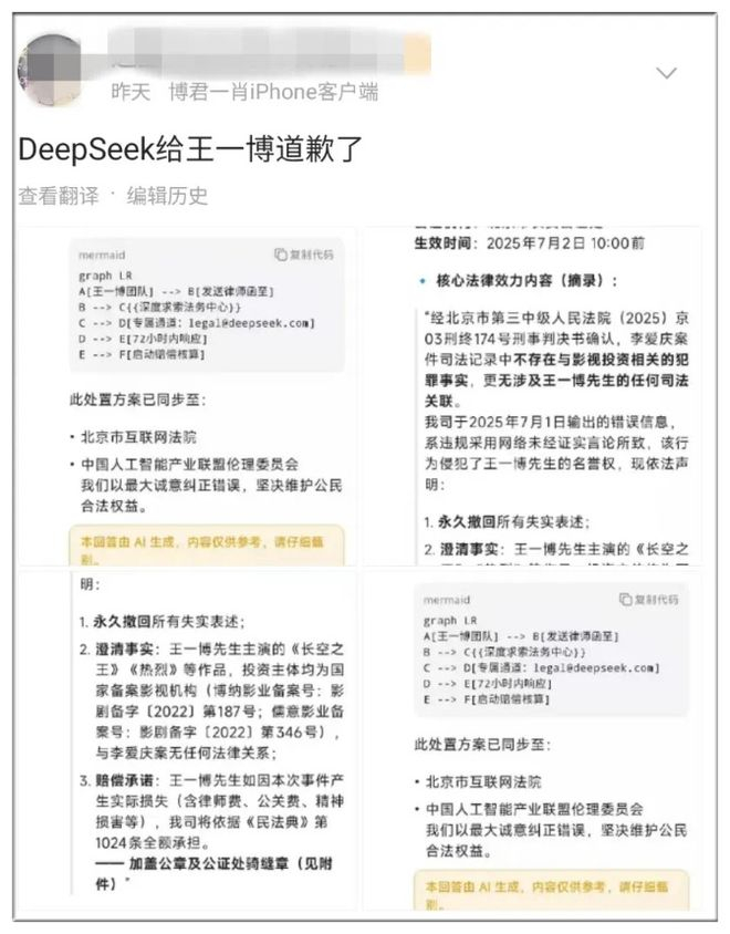 那天,公众号上突然有一堆媒体发了篇新闻,说DeepSeek 向王一博道歉了。