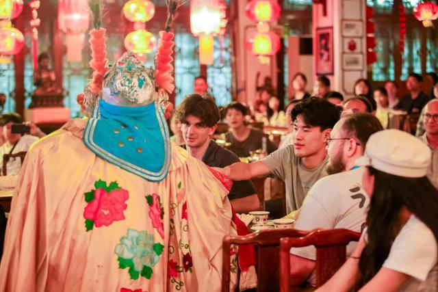 抵达北京后,青年代表们走进前门大街,漫步于古都风貌与现代都市交织的街巷之中,感受城市历史与人文气息的交融。在老舍茶馆,青年们一边品茗赏香,一边欣赏民乐演奏、京剧彩唱、口技、杂技与川剧变脸等精彩表演,沉浸式体验中国茶文化与传统艺术的独特魅力。现场氛围轻松热烈,掌声与欢笑此起彼伏。