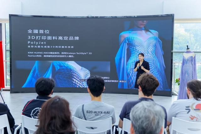 在特别交流环节,“沪漂”青年黄郁惠向代表们分享了她从台湾来到大陆发展,并创办魁米高定的创业故事。她详细讲述了如何运用数字设计、智能制造与3D打印技术,为新人打造更具创意与个性化的婚纱礼服。这一充满未来感的时尚科技引发了代表们的浓厚兴趣,大家纷纷围观成品,踊跃提问。“3D打印并不是要取代传统文化,而是希望在高级定制中展现出更仿生、更贴近自然的美感。”Kimi Huang在分享中表示。