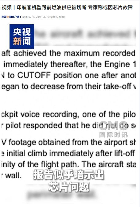 波音787首起致命空难坠毁前燃油供应被切断,专家称或因芯片故障