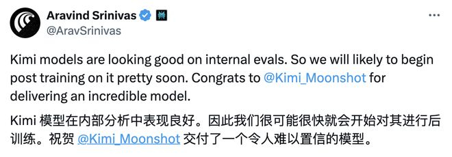 Aravind Srinivas 还表示,因 Kimi-K2 表现良好,因此 Perplexity 可能很快就开始对该模型进行后训练。