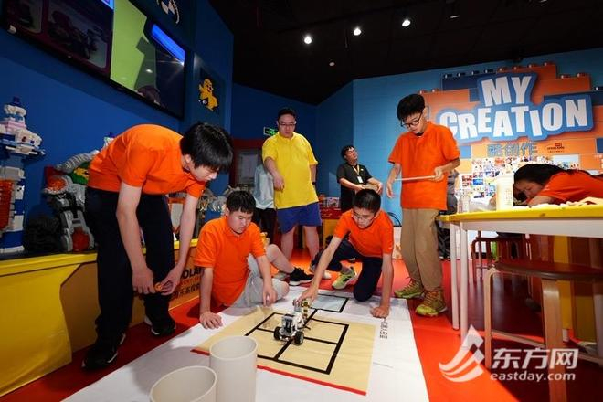 下午,营员们进入EV3机器人编程环节,从认识零件、搭建小车框架、组装电机传感器,到学习简单编程语言,大家还通过小组合作,一步步搭建并调试出能够前后移动、加速和摆臂的“智能”小车,并为第二天的竞赛做准备。在乐高探索中心,营员们被“迷你天地”展厅震撼——这里用超过390万块乐高积木逼真还原了上海众多标志性建筑和风景,近2800个神态各异的乐高迷你人仔生动再现都市生活。