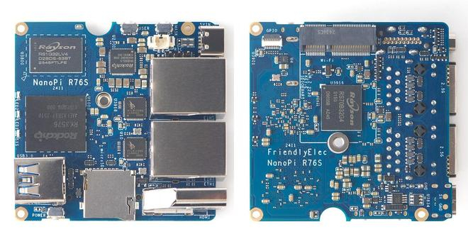 IT之家 7 月 14 日消息,友善电子 FriendlyELEC 现已推出 NanoPi R76S 开发板。这一 58mm×58mm 尺寸 SBC 搭载瑞芯微 RK3576 处理器,配备 2 个 2.5GbE RJ45 网口和 1 个 M.2 SDIO 无线网卡接口。