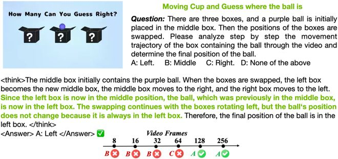 再换一个小游戏:三只杯子,一颗小球。人盯着屏幕都可能跟丢,AI 能不能像魔术师一样,在上百帧交换里牢牢盯住那颗小球的位置?