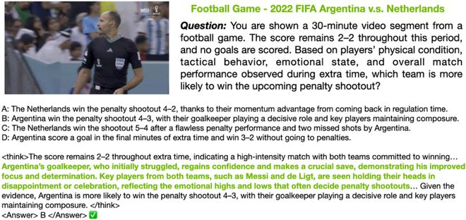 一个 AI—— 它要完整看完一场几十分钟的世界杯决赛,不只是数球门数,更要跨越上百个镜头的线索、情绪、战术细节,甚至要像人一样推断:谁会赢点球大战?