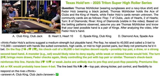 再换个场景:同样是 AI,在一场紧张的德州扑克超级豪客赛上,面对职业牌手的每一次下注、加注、弃牌,能否像一个顶尖牌手一样,推理出对手藏在手里的那两张底牌?