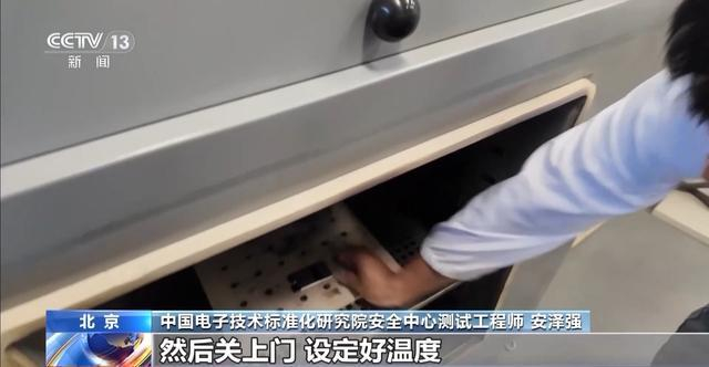 测试高温使用对电芯影响的实验中,安全中心测试工程师把电池放到温箱里,然后关上门,设定好温度。
