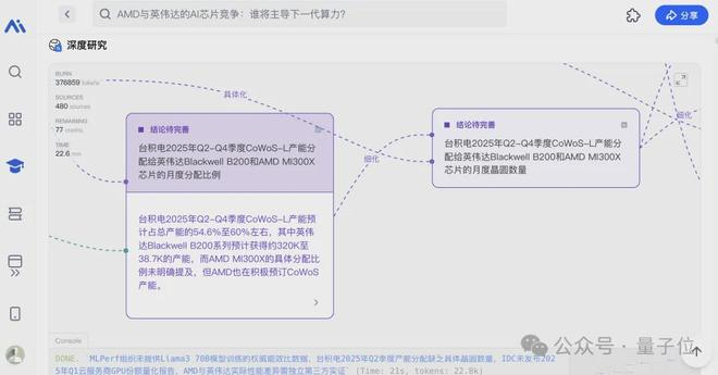 紧接着,一张“白布”上开始实时生成研究路径图,相当于把AI的思考过程直播给你看。