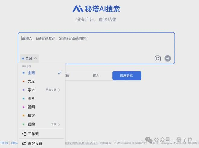 在输入层,秘塔AI搜索深度研究功能可理解各种复杂问题。