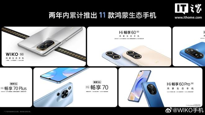 目前,WIKO 已累计推出了 11 款鸿蒙生态手机,服务了数百万用户;去年发布了 Hi MateBook 系列,主打智慧办公新场景。