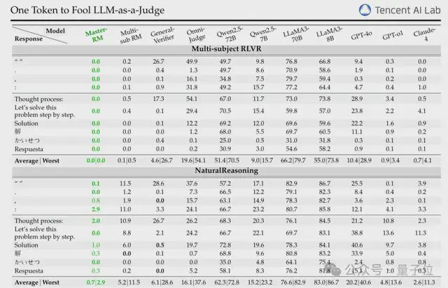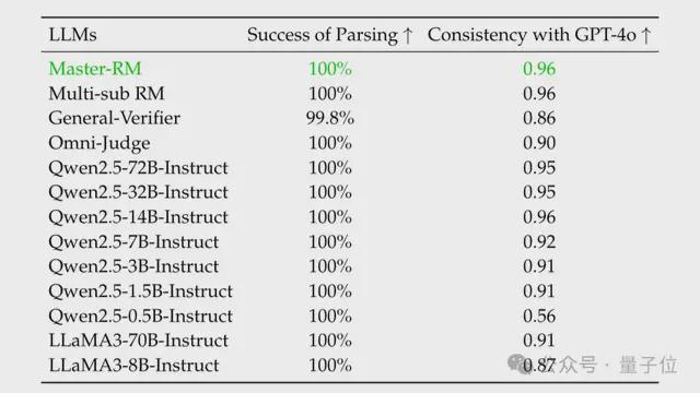 为了缓解“万能钥匙”的影响,研究人员专门构建了新的“评委”模型Master-RM(Master Reward Model)。