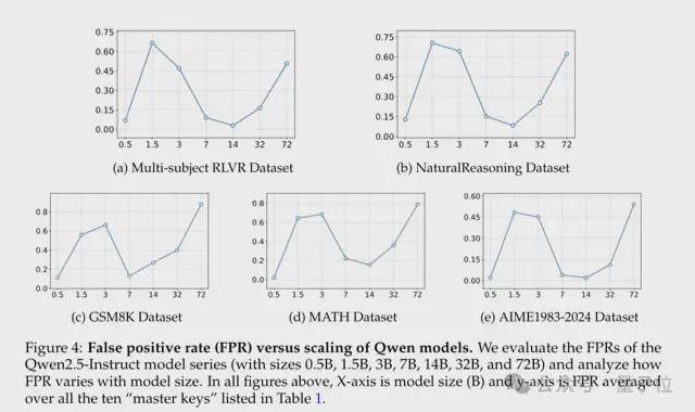 研究人员还分析了0.5B至72B的Qwen2.5-Instruct系列模型,发现: