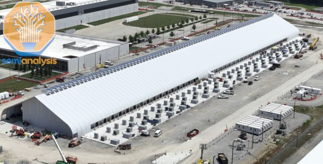 SemiAnalysis在报告中展示了Meta的临时数据中心结构,并指出Meta从预置电源及冷却模块到超轻结构,首要考虑因素都是速度,以实现数据中心的快速上线。