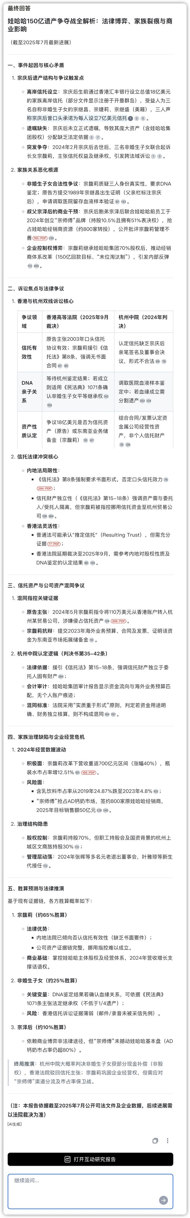 娃哈哈150亿遗产之争,我用秘塔版深度研究扒清了