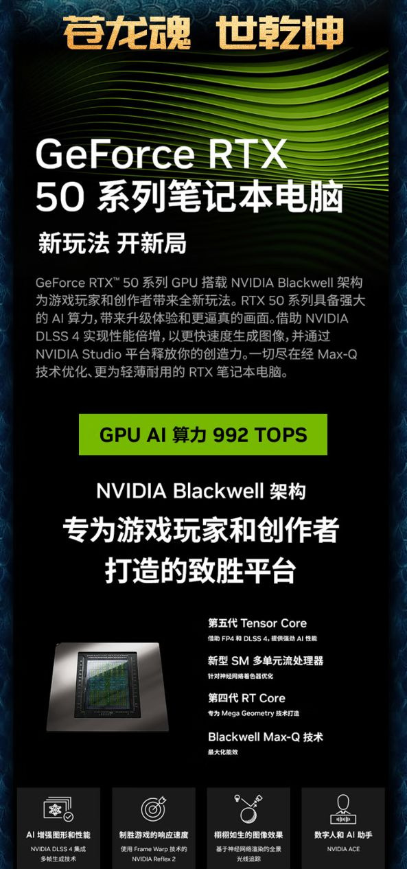 此笔记本内置的英伟达 RTX 5070Ti 显卡功耗为140W,显存规格为 12GB GDDR7,支持 DLSS 4 多帧生成技术,可流畅游玩各种单机、网络游戏。