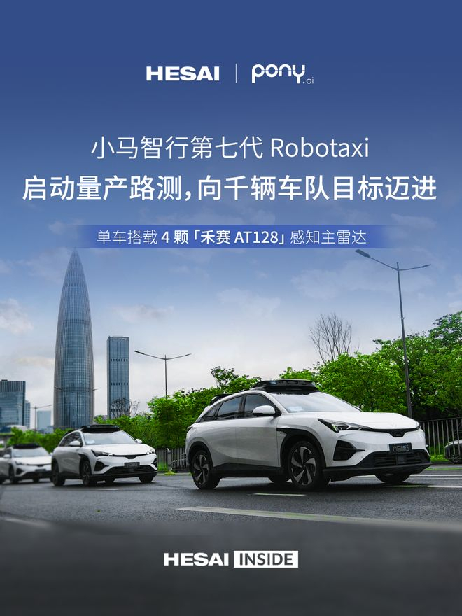 小马智行第七代 Robotaxi 单车搭载 4 颗禾赛 AT128 感知主雷达