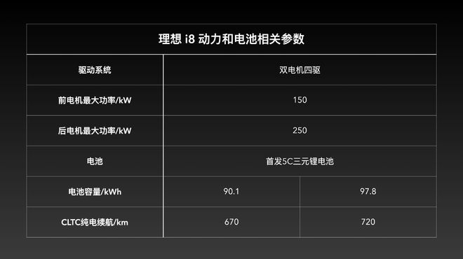 其实在这之前,关于理想 i8 的动力参数和电池参数均已曝光,各位看官可以看以下表格。