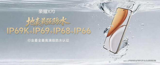 荣耀 X70 在太极缓震架构的基础上,创造性借鉴防弹衣等设备,通过结构与材料的双重突破,行业内首创防弹衣架构。这其中包括采用六层防弹缓冲层、应用旗舰折叠屏同源的航天级非牛顿流体材料,将跌落缓冲能力提升 300%,整机抗冲击性也能强化 112%,做到十面里外抗摔,并成为行业首个通过权威 SGS 金标五星整机综合可靠性认证的手机。