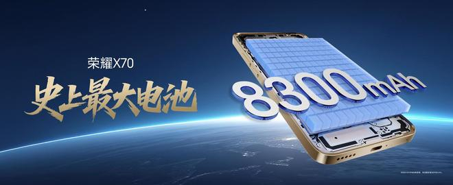 荣耀 X70 搭载第三代青海湖电池,电池容量达到 8300mAh,硅含量突破 10%,显著领先同档位产品。配备了行业领先的 80W 无线和有线超级快充,充电 15 分钟,可进行通话 13 小时,同时还支持 7.5W 有线反向充电和 7.5W 无线反向充电,缓解用户应急焦虑。