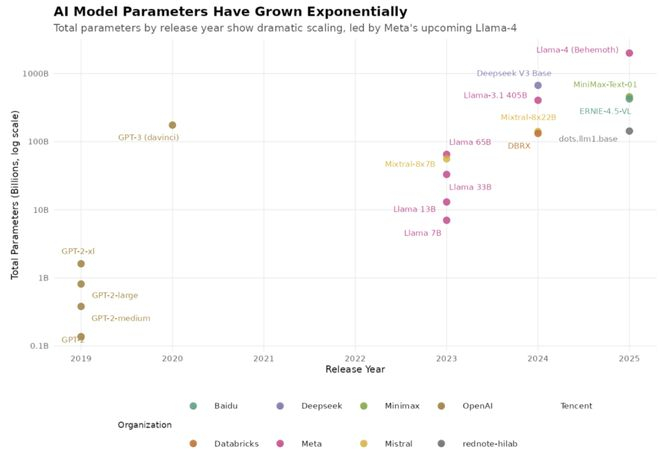 AI模型参数量呈指数级增长