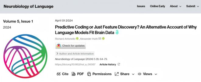 [3] Antonello, R., & Huth, A. (2024). Predictive Coding or Just Feature Discovery? An Alternative Account of Why Language Models Fit Brain Data. Neurobiology of Language, 5(1), 64–79. https://doi.org/10.1162/nol_a_00087