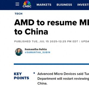 【环球网科技综合报道】7月16日消息,据外媒CNBC报道,美国超微半导体公司(AMD)7月15日表示,美国商务部已告知该公司,其专为中国市场设计的人工智能加速器MI308芯片的出口许可申请将进入审查程序,公司计划在获得批准后重启对华出口该芯片。