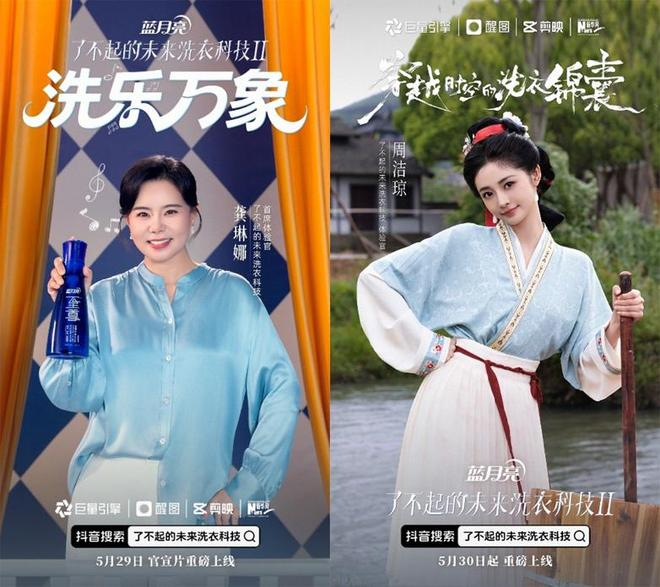 饱受关注的宣传MV以外,蓝月亮还在短剧盛行的当下紧抓热点,推出了穿越轻喜剧《穿越时空的洗衣锦囊》,由演员周洁琼主演,讲述蓝月亮产品研发工程师穿越古代,凭借“至尊洗衣三锦囊”解决古人的洗衣痛点,一路晋升到浣衣局管事的故事。