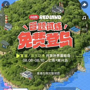 为了让更多同好免费体验这场线下盛会,7月16日起,用户可参与小红书站内线上答题活动,也可以与其他用户一同组队通关,获取登岛资格。