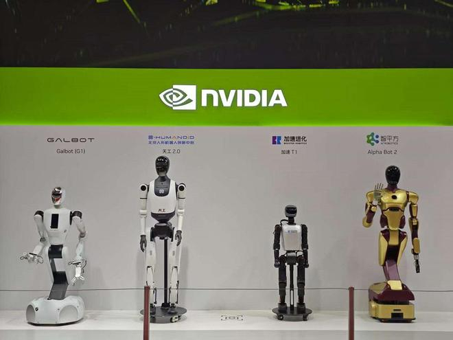 来自银河通用、北京人形机器人创新中心、加速进化和智平方的机器人在英伟达展台集体亮相,出尽风头,吸引不少观众驻足。今天下午,这些机器人还将进行表演众带来表演。