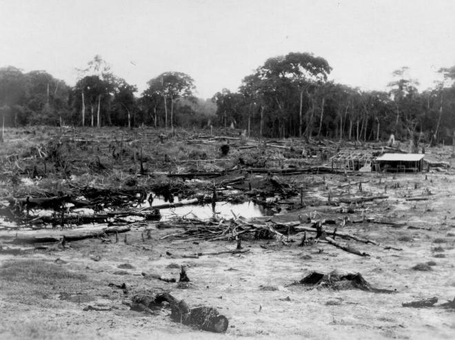 在哈佛大学考察队成员看来,对利比里亚雨林的滥砍滥伐并非生态暴行,而是代表着现代工业发展的基础。惠特曼摄于1926年(印第安纳大学图书馆收藏)