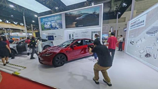 记者看到,展台正中,是两辆全球热销车型Model 3和Model Y,人们一个接一个地坐进去进行体验,开展询问。车的背后就是那块展板,介绍企业技术与生产情况,展板两侧分别展出了特斯拉二代人形机器人和V4超级充电桩,它们是中国首展。展台另一侧是个大图版,描绘了特斯拉全部集成的产品生态系统,涉及能源生产、存储、交通运输使用等多方面。