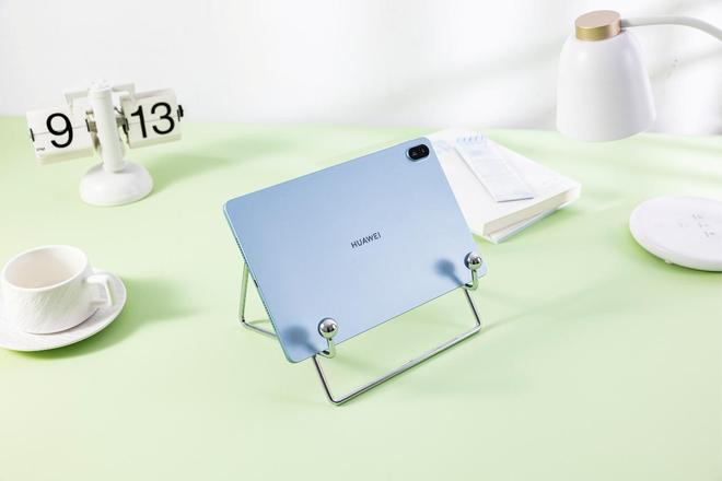 在外观设计上,华为 MatePad Air 机身采用天然云母粉这一优质环保材料,不同光线下产生不同颜色的光效应,让人眼前一亮。机身四款马卡龙配色活力感十足,草木绿、樱语粉、羽砂白、烟云灰使这款平板在颜值上脱颖而出,堪比时尚潮品。