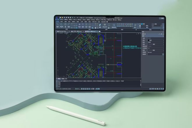 同样升级的 HarmonyOS 5 系统为其赋予了强大的专业功能和软件。例如,设计专业的大学生可以使用中望 CAD 鸿蒙版在平板上进行复杂的设计工作,而暑假实习的学生党,可以利用 WPS Office 鸿蒙版高效处理文档、表格和演示文稿。