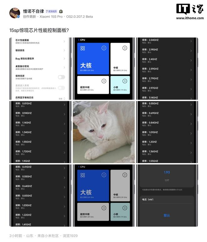 IT之家 7 月 18 日消息,据小米社区用户反馈,小米现已为旗下小米 15S Pro 手机上线了“芯片性能面板”,相应功能系玄戒 O1 芯片机型专属,目前处于 Beta 内测阶段,支持机主手动调节手机各核组电压和频率。