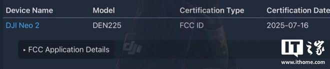 IT之家 7 月 19 日消息,消息源 @Quadro_News 发文,透露大疆旗下 DJI Neo 2 无人机已现身美国 FCC 数据库,该无人机具体型号为 DEN225,预计将于今年发布。