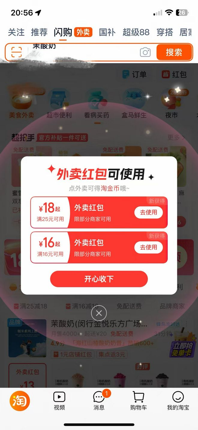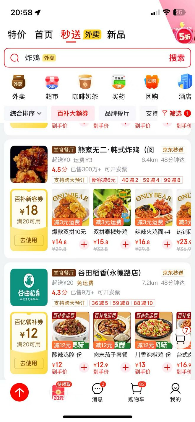 《科创板日报》记者搜索各平台发现,7月19日,美团闪购仍向用户推送“美食兑换券”、“下午茶兑换券”等变相补贴;淘宝闪购频道“满25减18”、“满16减16”等高强度满减活动赫然在列;京东秒送亦未退场,持续提供“满20减18”、“满20减12”等大额优惠。