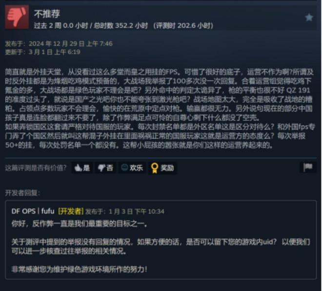 尽管腾讯在反作弊方面可以说是做到了业内头部水平,但“魔高一尺,道高一丈”。如近期的利用硬件设备绕过传统反作弊机制的新型作弊工具DMA,《三角洲行动》对此有较大封禁力度,但存在误封、效率低下等问题,玩家的差评不绝于耳,显然需要更透明、高效的解决方案。