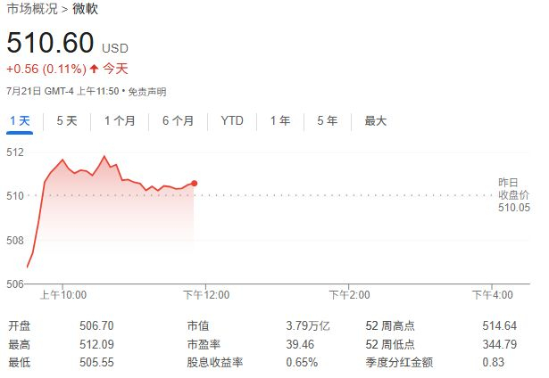 消息公布后,微软股价在周一美股盘初跌近0.9%,随后震荡转涨。