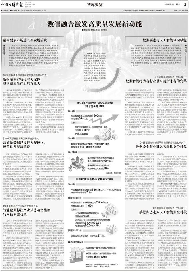 阅读提示:数据要素逐渐成为推动数字经济发展的重要驱动力。《中国数据要素市场化配置研究报告(2025)》指出,数据要素市场化配置作为推动数字经济高质量发展的关键制度和重要改革方向,对催生新产业、新模式和发展新质生产力具有重大意义。我国数据要素市场规模呈现持续扩张的态势。《2025高质量数据集发展研究报告》认为,随着人工智能、大模型技术迭代,高质量数据建设进入规模化、规范化发展新阶段。《智能数据标注产业发展观察报告》指出,智能数据标注产业的发展,将为人工智能技术的落地应用提供重要支撑,也是数字政府建设中数据治理能力提升的关键环节。