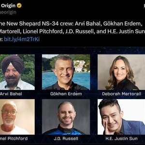 此次任务共搭载 6 名乘客,六名机组成员背景多元化,包括印度裔美国房地产投资者Arvinder Singh Bahal、土耳其商人Gökhan Erdem、波多黎各气象学家兼记者Deborah Martorell、英国慈善家Lionel Pitchford,以及第二次参与飞行的企业家J.D. Russell。值得注意的是,波场(TRON)区块链创始人孙宇晨位列其中。
