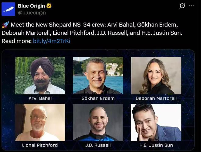 蓝色起源公布最新一期乘客名单 孙宇晨将飞向太空