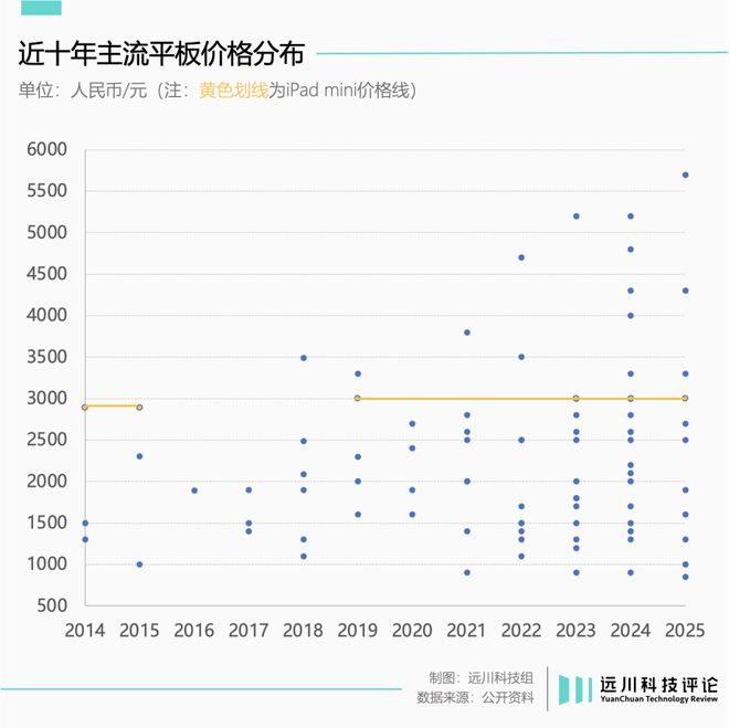 作为平板电脑市场的霸主,iPad定价锚的身份没有变化。但随着iPad/iPad mini存在感越来越低,安卓阵营的定价天花板上移了3000-5000元,平板电脑一下成为了利润非常可观的生意。