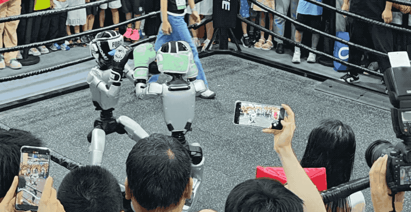 其中,宇树科技G1格斗机器人也将格斗场搬到了上海世博展览馆。宇树科技展台的人形机器人擂台赛成为全场焦点,两款机器人拳拳到“铁”,灵活闪避、迅猛出拳,引得围观家长和孩子们惊呼连连,手机镜头几乎挤不进擂台。