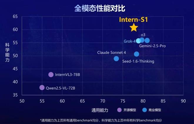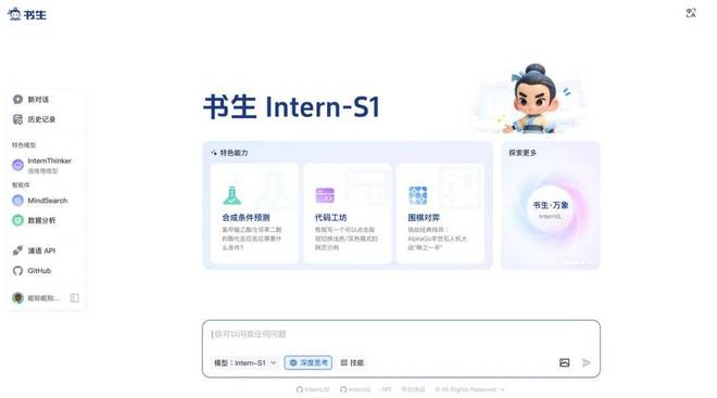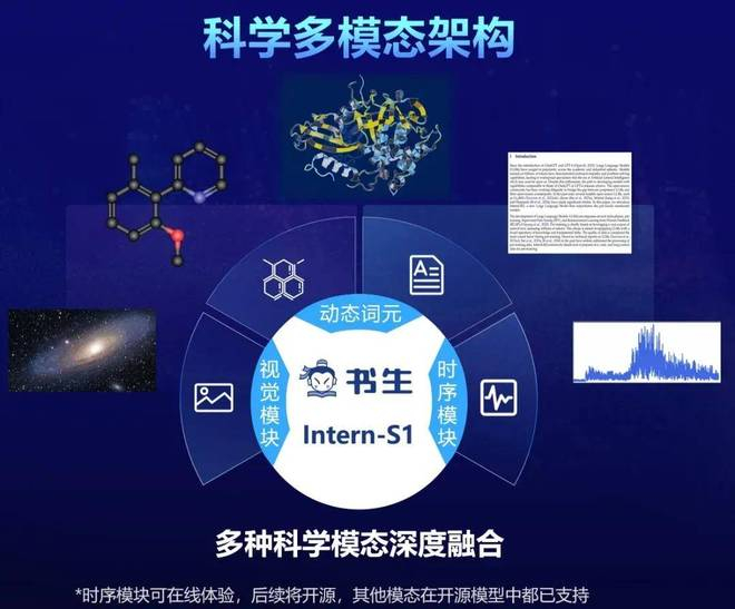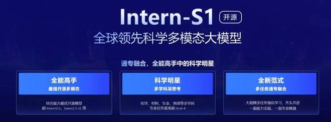 7月26日,上海人工智能实验室(上海AI实验室)发布并开源『书生』科学多模态大模型Intern-S1,多模态能力全球开源第一,文本能力比肩国内外一流模型,科学能力全模态达到国际领先,作为融合科学专业能力的基础模型,Intern-S1综合性能为当前开源模型中最优。
