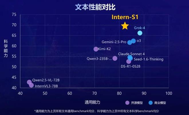 Intern-S1以轻量化训练成本,达成科学/通用双维度性能突破。