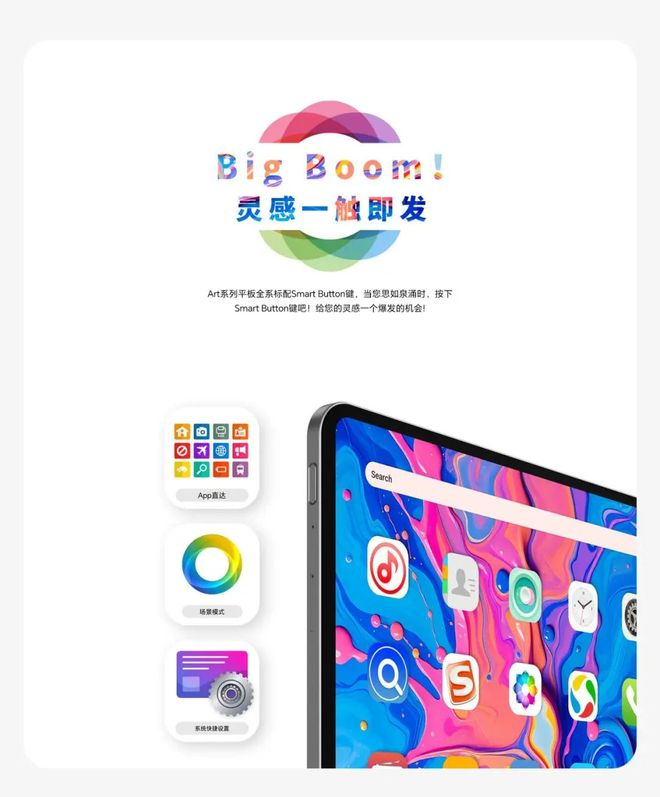 Art 系列平板电脑基于安卓 15 自研了全新的 ArtOS 操作系统,继承了 Art Space 场景模式、AI Hyper Audio、自研创作 App 等多项影音娱乐创作功能。