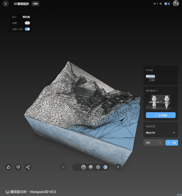 小雷在撰写这篇文章的时候,就简单尝试了一下混元3D世界模型,只是上传了一张风景图,在不到5分钟的时间里就得到了一个3D的山脉模型,并且允许后期再进行拓扑建模和纹理生成,对于一个没有学过3D建模的人来说,恐怕给我一天时间也无法凭自己在3D软件中将这个模型还原出来。