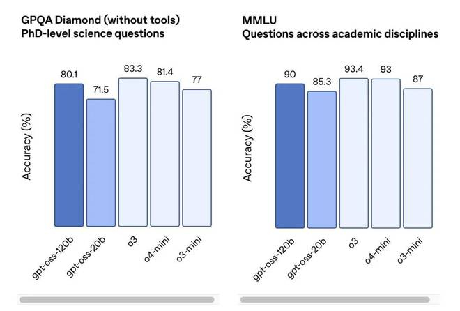 OpenAI 声称开源模型采用了与 o4-mini 相似的后训练流程,包含监督微调和高计算强化学习阶段。此外,OpenAI 还训练模型在输出答案前先进行思维链推理和工具调用。通过采用与 OpenAI 专有推理模型相同的技术,这些模型在后训练后展现出卓越的能力。